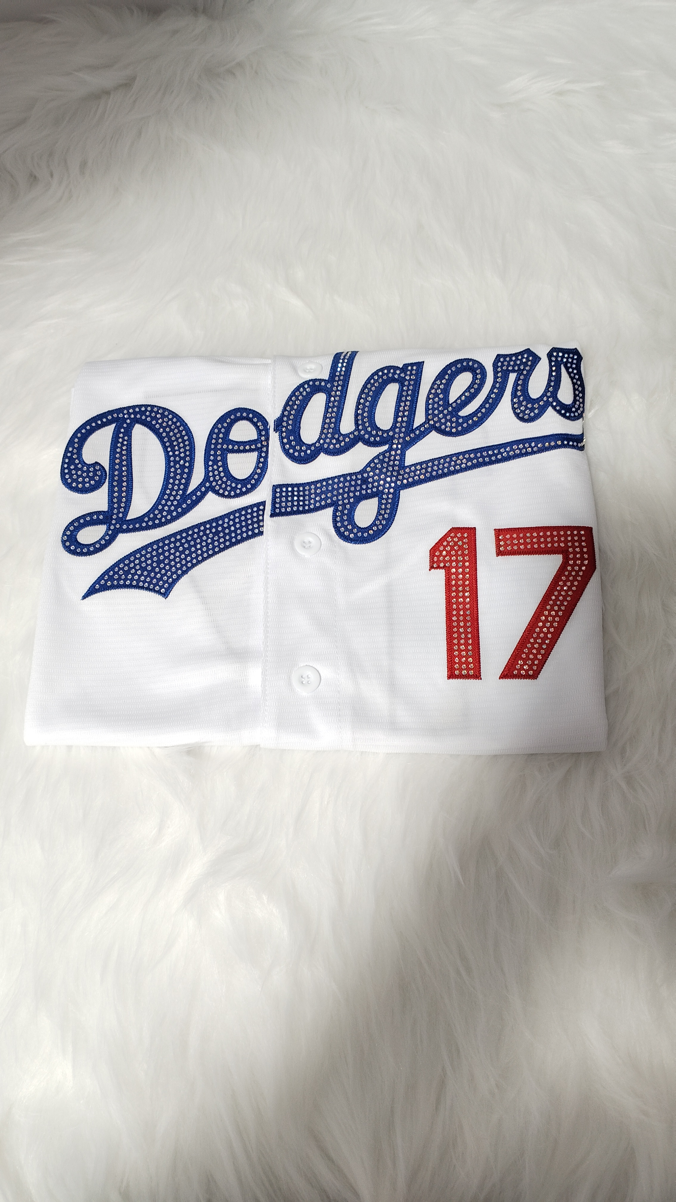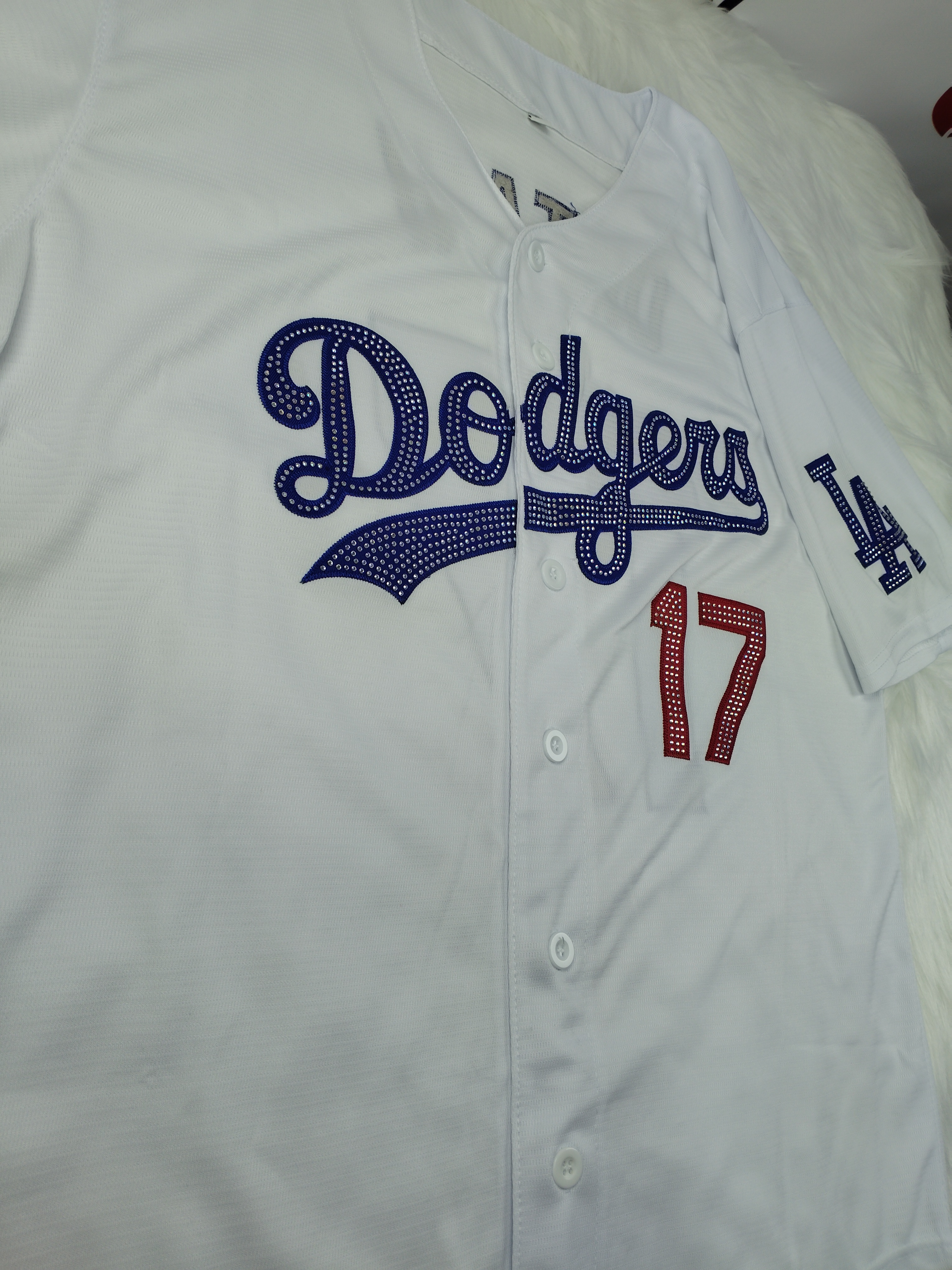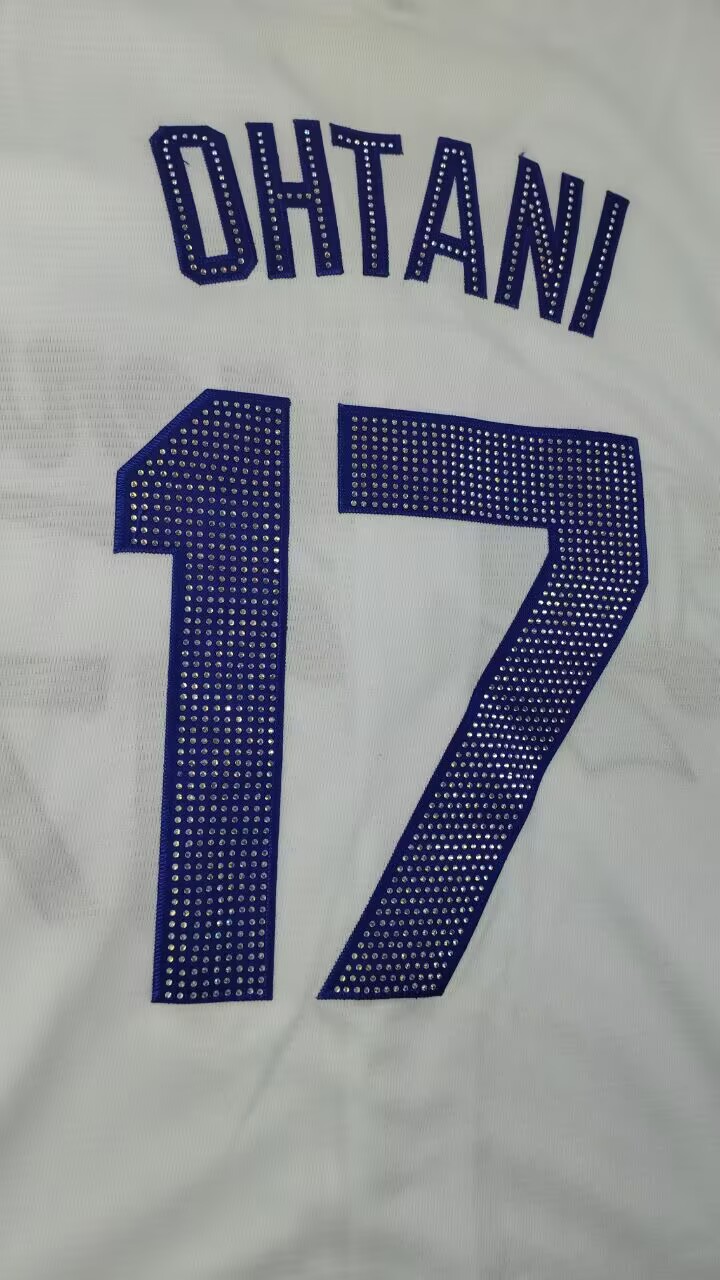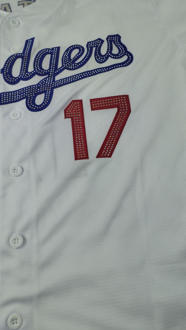 Detail• A dazzling tribute to Shohei Ohtani’s legacy, this rhinestone-encrusted jersey blends luxury and fandom for the true Dodgers devotee.• Crafted for collectors and style-forward fans who value exclusivity, craftsmanship, and authentic MLB spirit.• Perfect for game-day pride, celebrity-inspired looks, or showcasing your passion at sports memorabilia events.• The logo-free design highlights intricate embroidery and shimmering details, making it a standout piece of wearable art.• Celebrate baseball excellence with a limited-edition jersey that speaks to heart, heritage, and high-end taste.