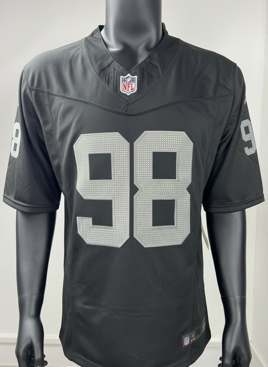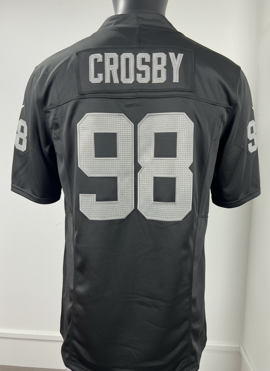 DetailShowcase your favorite player's on-court prowess in this embroidered and rhinestone-embellished Las Vegas Raiders player Max Crosby game jersey. Featuring embroidery and rhinestones of the player's name, number, and team information, the jersey allows you to project a stylish image before the game while providing a comfortable and lightweight feel. Designed for everyday activities, this jersey offers a flattering fit, excellent breathability, and mesh side panels to keep you dry and comfortable as you celebrate every exciting moment of the Las Vegas Raiders season.